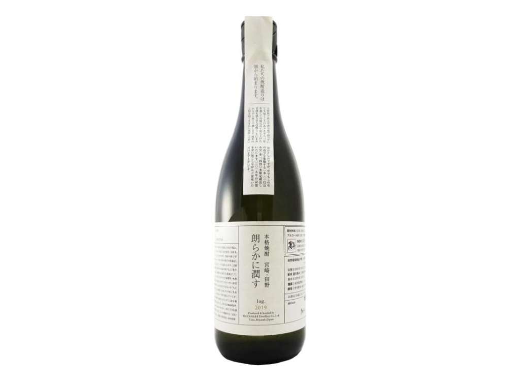 毎年1回、その1年の酒づくりを象徴する原酒を詰めるという、宮崎県、渡邊酒造場の〈朗らかに潤す〉。その年の仕上がりについてのこだわりや説明が、ラベルから封シールまでびっしりと紹介を書きこんであるのに、整理の行き届いた美しくシンプルなデザインにまとまっているのは見事。しっとりとした質感のラベルの紙質がぴったりの、品のあるラベルです。