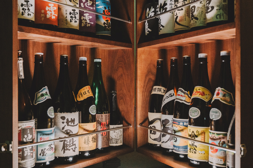 促されておそるおそる箱のロックを外すと、入っていたのは一升瓶の焼酎。およそ40本ほどの焼酎が隙間なく並んでいる! なかでも熊本県の蔵元、天草酒造の焼酎はとりわけ豊富。蔵の代表・平下豊さんと以前から親交があることから、〈池の露〉や〈天草〉の限定酒などマニアックな銘柄を揃えている。あえて焼酎のボトルを隠す理由には、藤本さんの店主としてのこだわりがある。