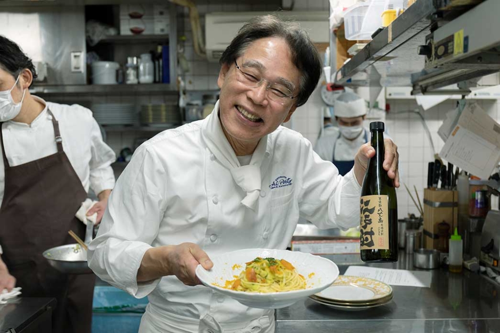 「イタリアンと熟成焼酎? そりゃあ合うよ~!」にこやかにそう言い切るのは、西麻布のイタリアン「リストランテ アルポルト」の片岡護シェフ。1983年に自身のレストランをオープンして40年近く、日本を代表するシェフの一人として走り続けてきた人にそんな風に言われると、焼酎びいきとしては頬が緩んでしまう。