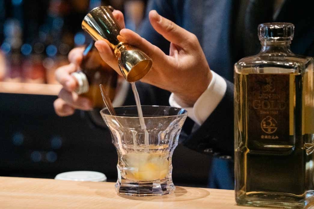 「ガーニッシュとして添えたミントも中に入れていただきます! シンプルなステップでつくれるのに、〈田苑 ゴールド〉の麦熟成の香ばしさと樽由来のバニラ感がどちらも感じられて、とってもいいバランスですね。同じレシピで〈田苑 桜 ゴールド〉でつくるのもおいしそう。とてもリフレッシングなカクテルで食事を全く邪魔しないので、ぜひ食中酒として飲んでほしい! フライドチキンなど脂っこい料理にも寄り添ってくれそうです」