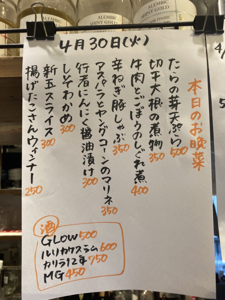 「西荻は独り暮らしの方も多いですから、肉や野菜のバランスが良くて季節感を活かしたメニューを心がけるようにしています。白いご飯も用意しているので、立ち呑み屋ですけど定食屋さんみたいに通って来る学生さんもいますよ(笑)」と、園田さん。