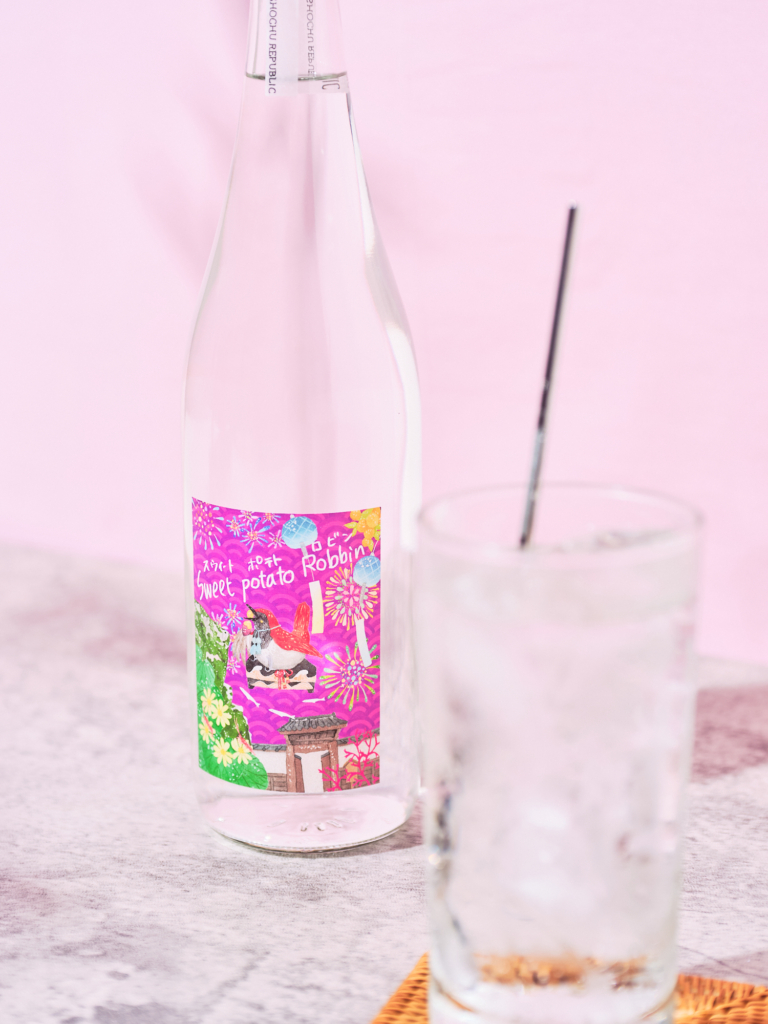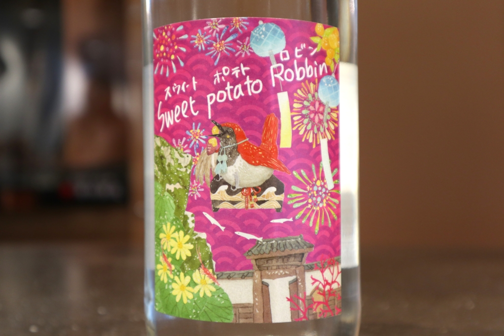 「Sweet Potato Robbin」はフルーティーなぶどうのような香りと上品さに加え、ラムレーズンのような芳香が感じられます。アルコール度数は25 %です。強めの炭酸で割って頂くとまるでファンタグレープのような甘い香りに。ワイングラスでイタリアンに合わせて頂くのもおすすめです。