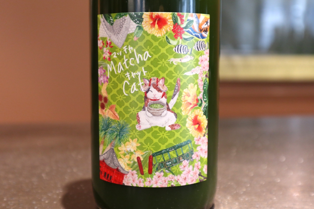 ラベルは抹茶をイメージしたグリーンカラーがベースです。製造蔵元である濵田酒造が位置する鹿児島県の伝統的なお祭り「さのさ祭り」の傘かむりを被っている三毛猫が抹茶を飲んで一息ついている様子がデザインされています。よく見るとこのラベルにもぎっしりと情報が詰まっていて、酒蔵さんの地域や文化が垣間見れるのも楽しいですね。