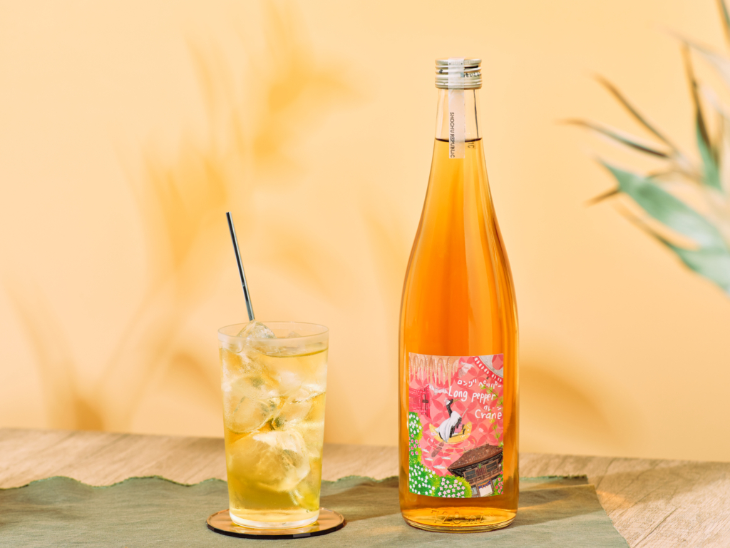 「Long Pepper Crane」はインド原産の香辛料ロングペッパーを米焼酎に漬け込んだアルコール度数25 %のリキュールです。ジンジャーエールやシロップで割るとクラフトコーラのようなスパイシーで爽快な香りが楽しめます。特にエスニック料理, フリット等の揚げ物との相性が抜群です。