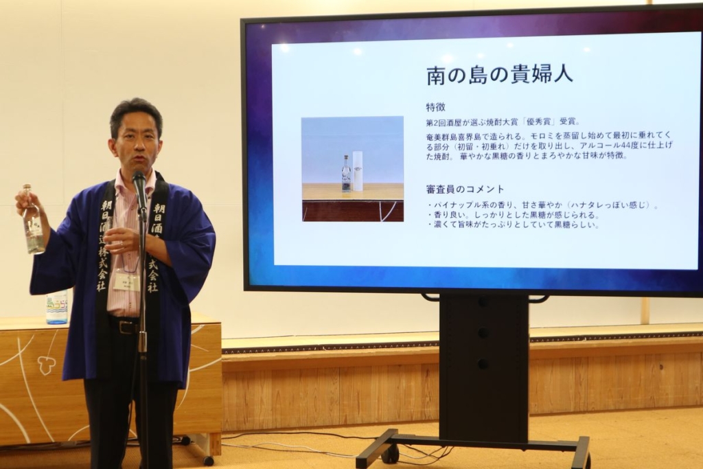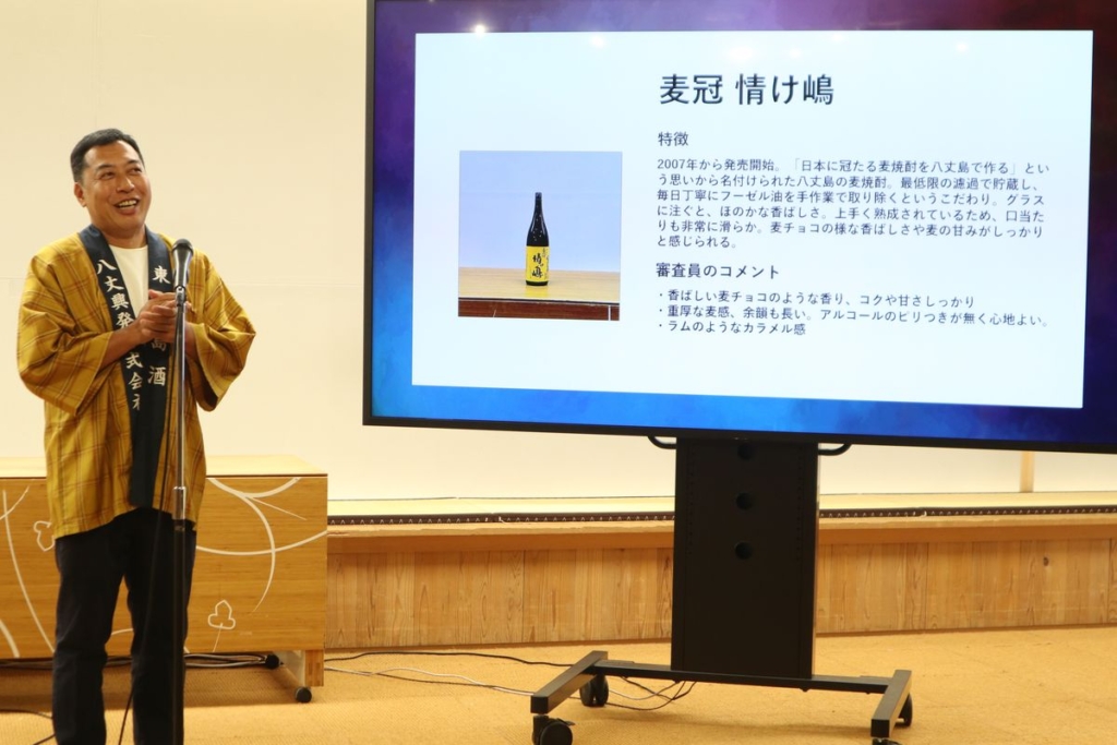 私自身は広島市酒類総合研究所等を経て2005年から約20年焼酎作りに携わっていますが、祖父の時代に作っていた飲みごたえのある焼酎をもう1回復活したいということで作ったのが、『麦冠情け嶋』です。今年の3月にはGI『東京島酒』を取得することができました。9月には国際フォーラムでもイベントをするので多くの方に東京島酒を知って欲しいですね」と喜びを語りました。