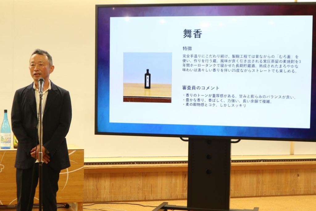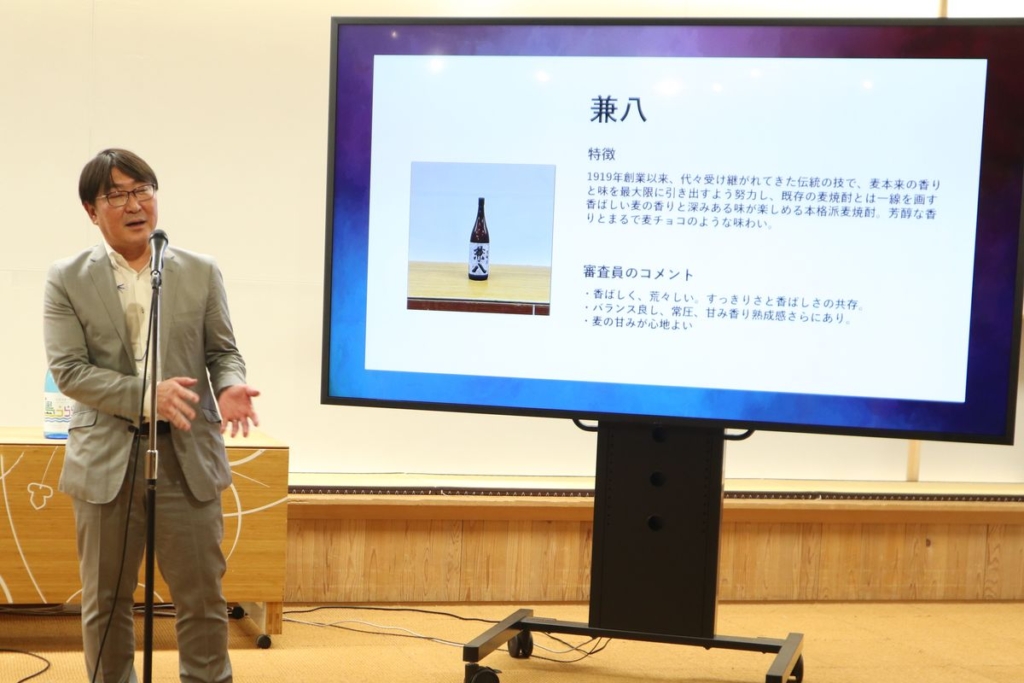 四ッ谷岳昭さんは「今回優秀賞を頂いて1番びっくりしてるのが当の本人です。『兼八』は評価が分かれる焼酎かなとずっと思ってたんですけれども、改良しながら風味を残しつつ欠点を取り除く作業を続けてきたことで、今回受賞できたのかなと感じております」と謙虚なコメントをされていました。