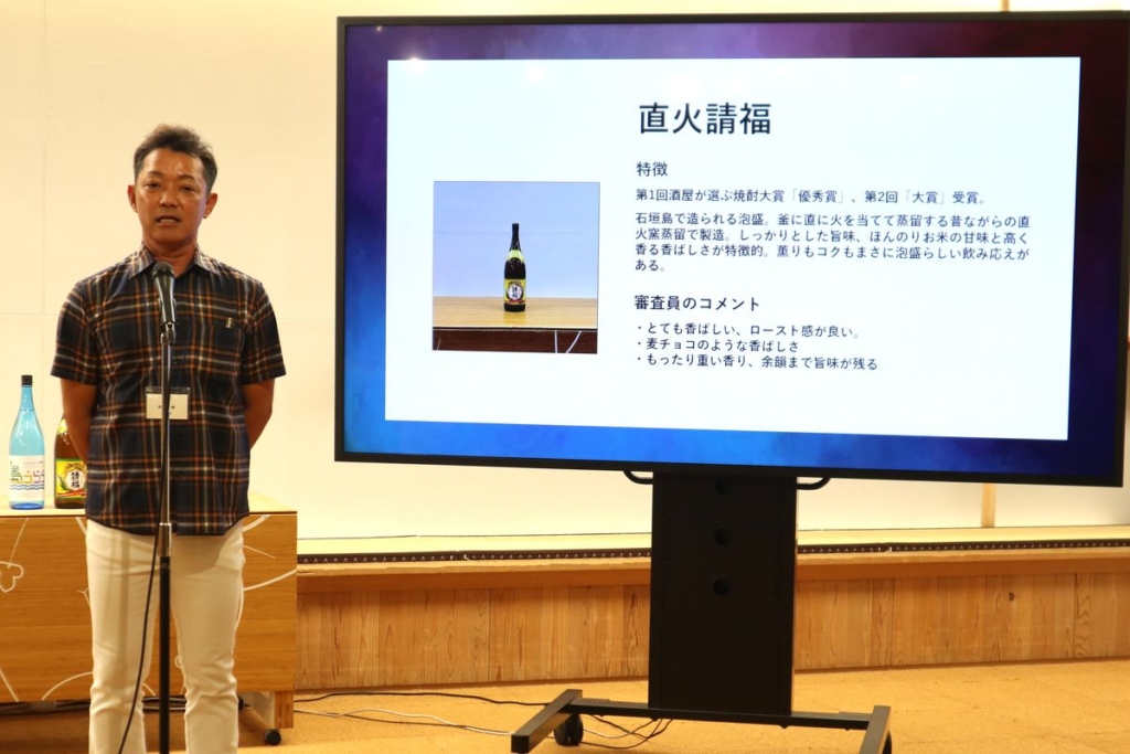 座喜味盛行さんは「石垣島は沖縄県内でも有数の米どころです。自分たちの島でできたお米で泡盛を作りたいと思ったのが最初の始まりでした。泡盛はタイ米で作るのがセオリーですが、地元のお米を使うこと苦労した点もございました。なんとか商品化することができ、ありがたいことに優秀賞を頂くことができて大きな喜びを感じています」とコメントしました。