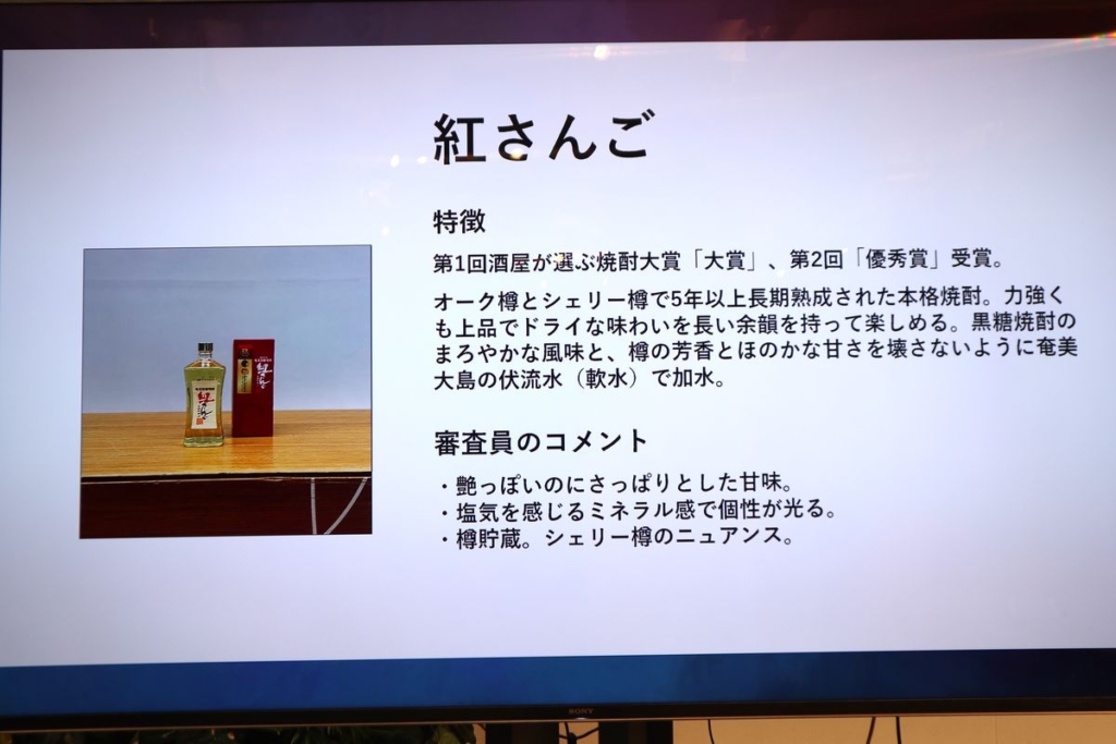 今年は114店が全国から参加し、芋、麦、米、黒糖、泡盛の5部門で各1本ずつおすすめの焼酎を選定、ノミネートされた218銘柄を一同に集め、約90名の酒販店がブラインドでの審査会を実施、大賞が選ばれました。