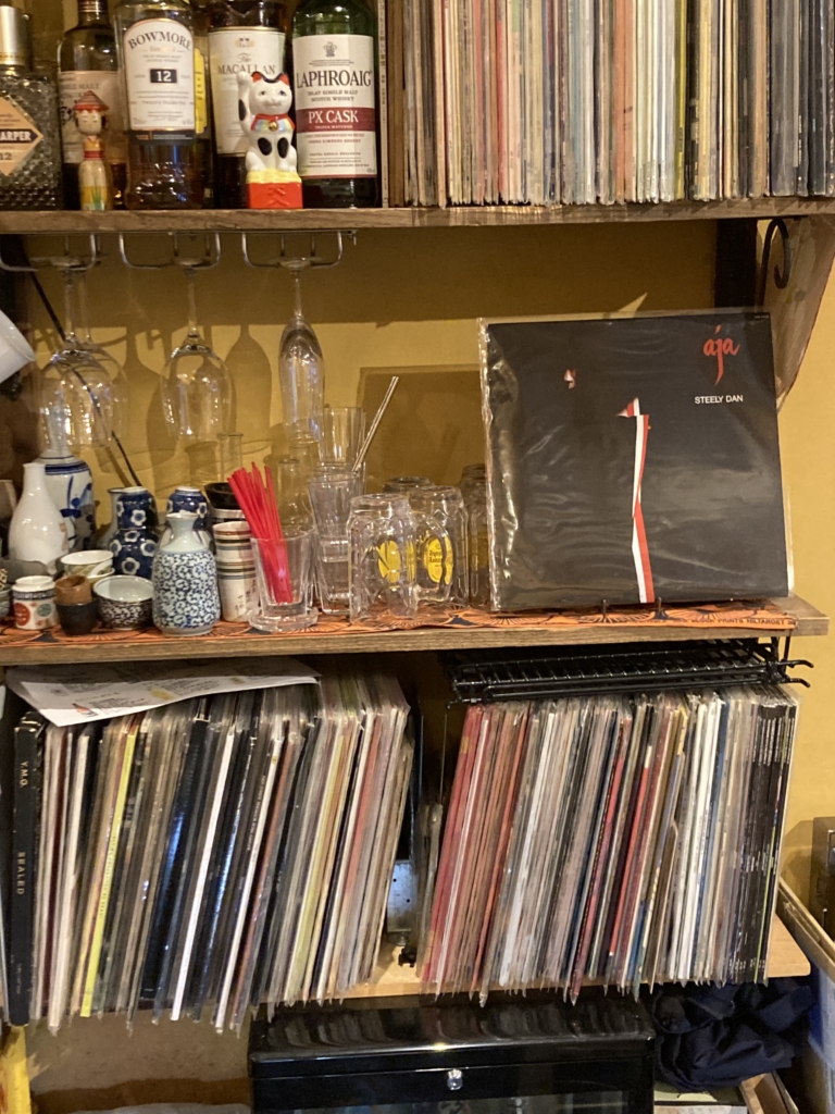 店内には、いつもほどよい音量でLPレコードの音楽が流れている。ジャズからロック、レゲエ、ソウル、歌謡曲とジャンルも幅広く、懐かしい年代物が多い。開店当時は数十枚程度だったのに、いつの間にか棚一杯に増殖してしまった。