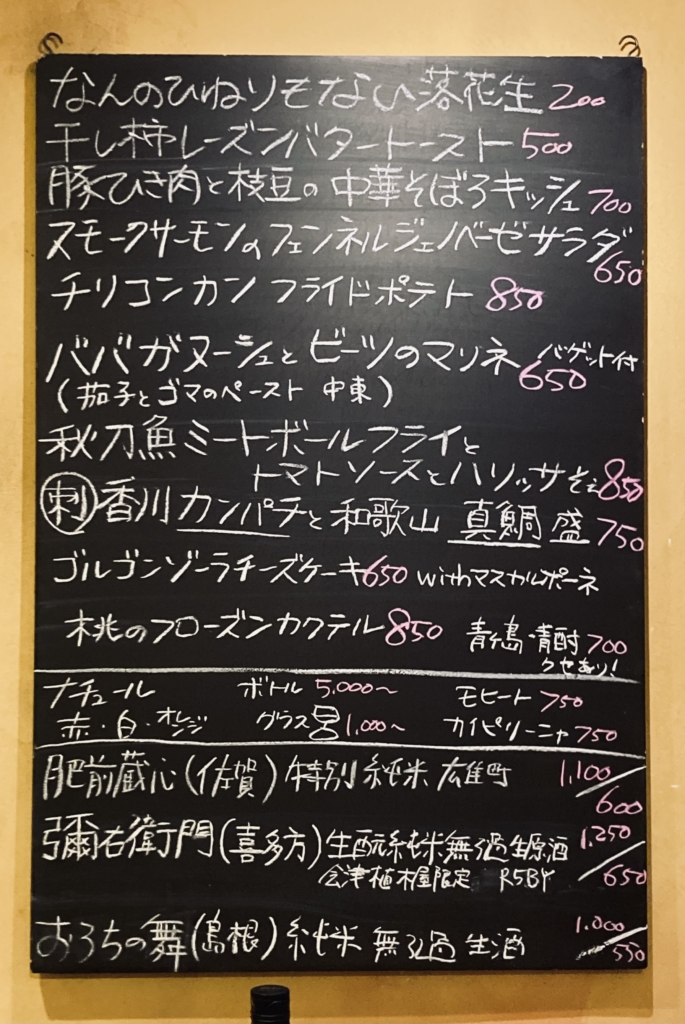 さしづめスペイン語の”ケセラセラ(なるようになるさ)”、広東語なら”モーマンタイ(無問題)”とでも言ったところであろうか。店の公式サイトには”諸行無常万物流転酒場”という、言い得て妙なる謳い文句も記されている。