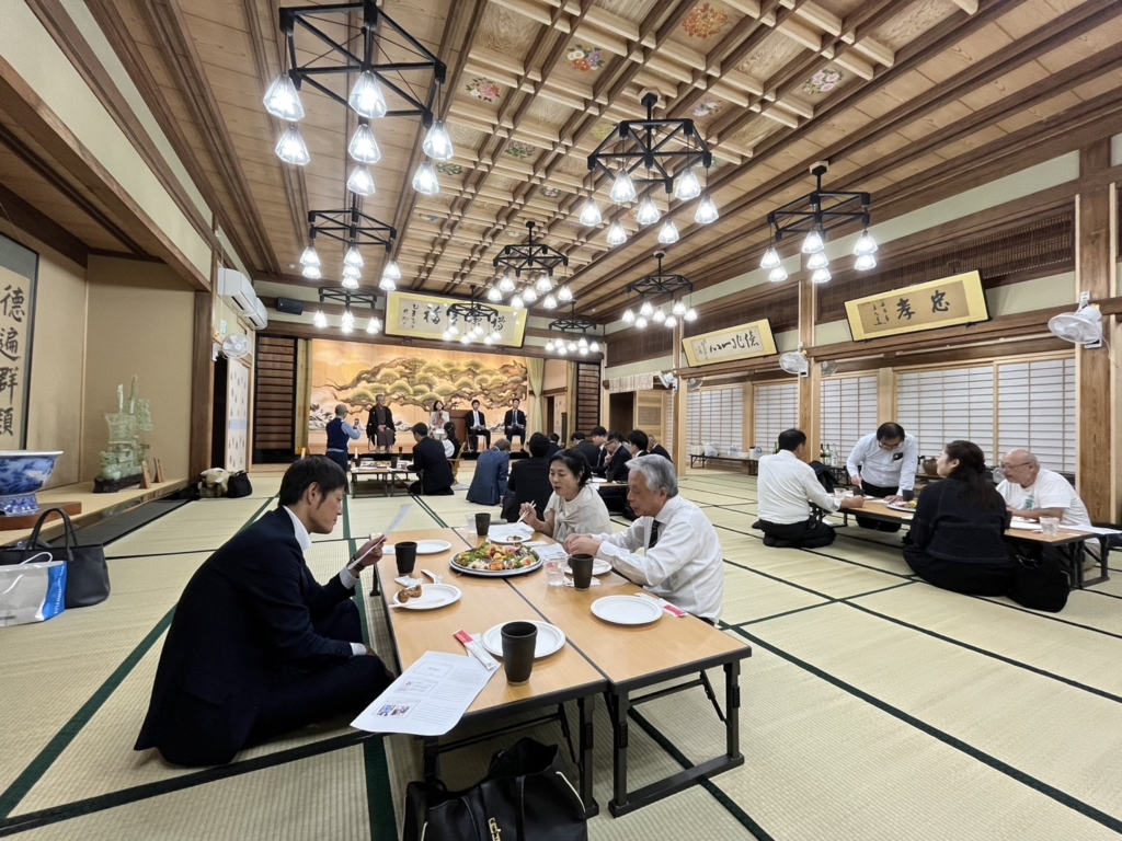 活動報告終了後はお楽しみの時間。九州スピリッツを片手に各テーブルでそれぞれ交流が始まり、各蔵の近況や今後について語る場が設けられました。