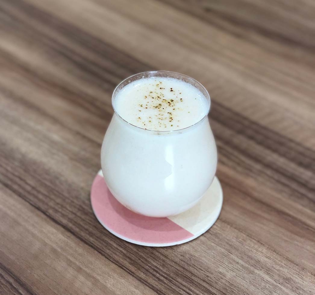 | • 芳華 礼世奈 球磨焼酎(45ml) • Kawaii SHIROI LA FRANCE(25ml) • 花梅酒~elder flower~(10ml) • 通潤甘酒(20m) • 京の水塩(1spray) • ガーニッシュ:種ぬき まるごとおいしいカリカリ梅(1個) • ガーニッシュ:大根(2枚) |