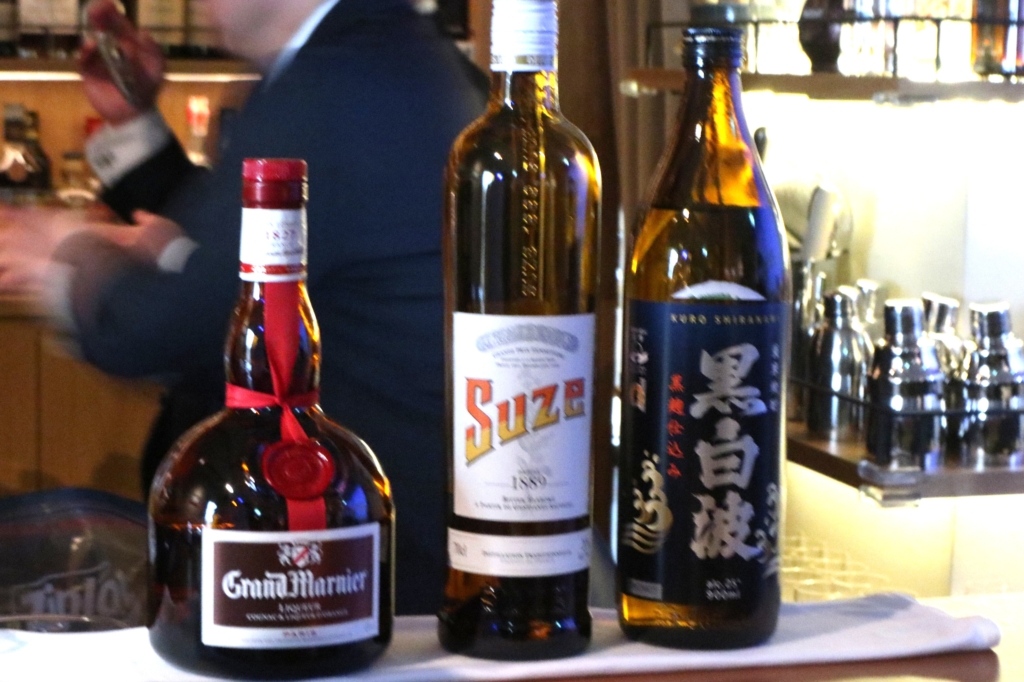 使用したのはオレンジリキュール「グランマルニエ コルドンルージュ」・フランス原産の薬草リキュール「SUZE」と黒白波、さらに昆布出汁です。遠藤氏は10年間の香港生活で、「世界的にも旨味を使ったカクテルが非常に人気だ」と確信したそうで、今回の組み合わせが生まれたといいます。