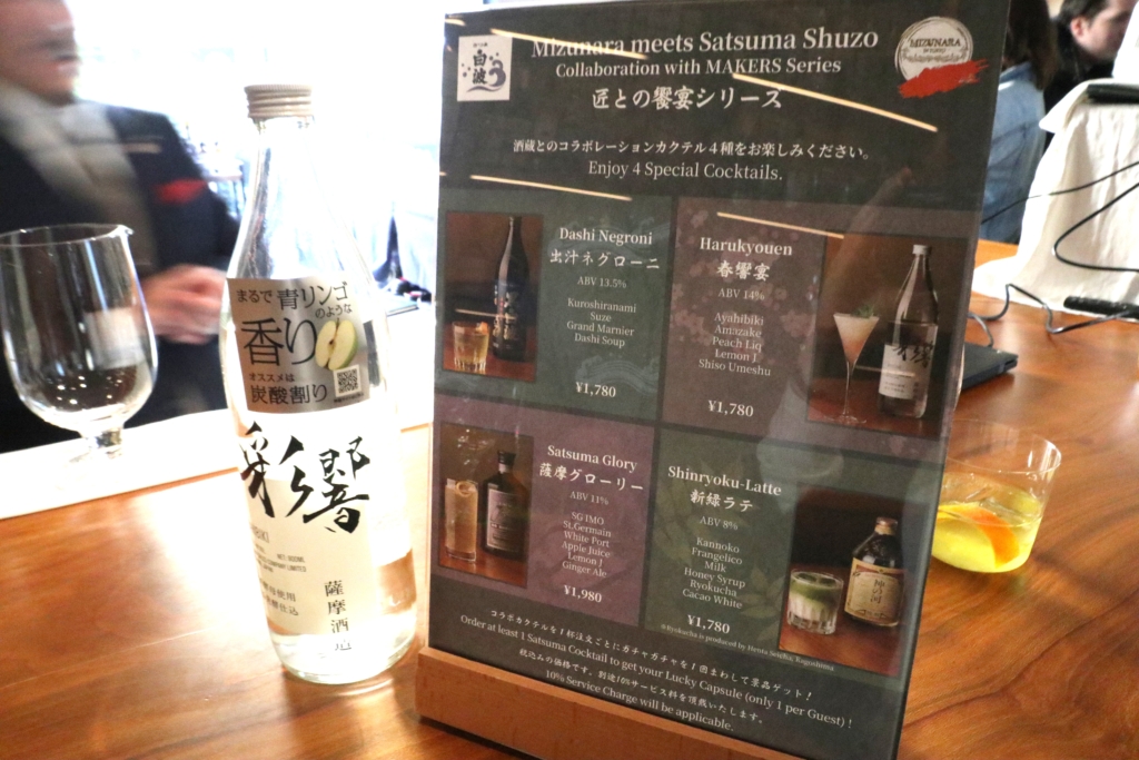 3月1日より、神楽坂にあるバー「Mizunara: In Tokyo」では薩摩酒造の焼酎を使ったカクテル4種を提供する特別月間が開催されています。初日に業界関係者向けに開催されたオープニングイベントの様子をお伝えします。