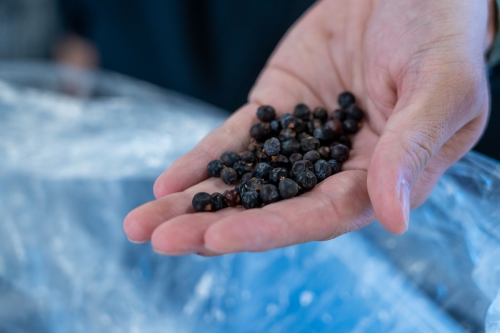 ジュニパーベリーは1本の木に、1シーズンで1000粒程度しか成らないため非常に貴重な素材です。国産タイプもありますが、世界的にはマケドニア産のジュニパーベリーが最も多く使用されています。有名な『ロンドンドライジン』のドライの意味は、味わいではなく使用するボタニカルが乾燥物であることを示しているんですよ」