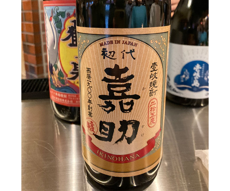 レトロなラベルがいい雰囲気を出している、壱岐の華『初代 嘉助』(700円)。