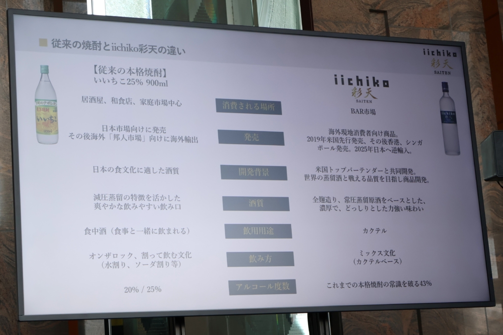 「『iichiko彩天』は私どもにとって非常に重要な商品です。いいちこは日本中の皆様から愛される身近なブランドとして知っていただけるようになってまいりました。ところが、世界の中では焼酎はまだまだ知られていません。
