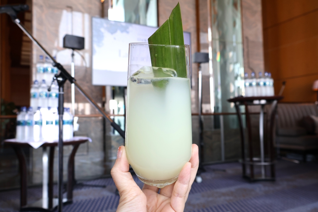 レオ氏考案の「ペアープレッシャー」は『iichiko彩天』・濃縮カルピス・パンダシロップ・ベルドブリエ・レモンジュース・炭酸・パンダンリーフを使用。