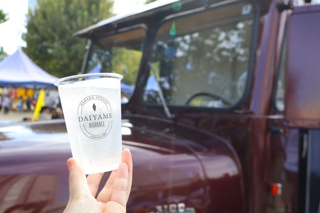 「だいやめ~DAIYAME~」のハイボールを購入していた女性に話を聞くと、「さっきから一緒に来た友達と『あの車かっこいいよね』って話していました!」とのこと。興味を持って近づいてみたら、「だいやめだ!」ということで購入されたそうです。