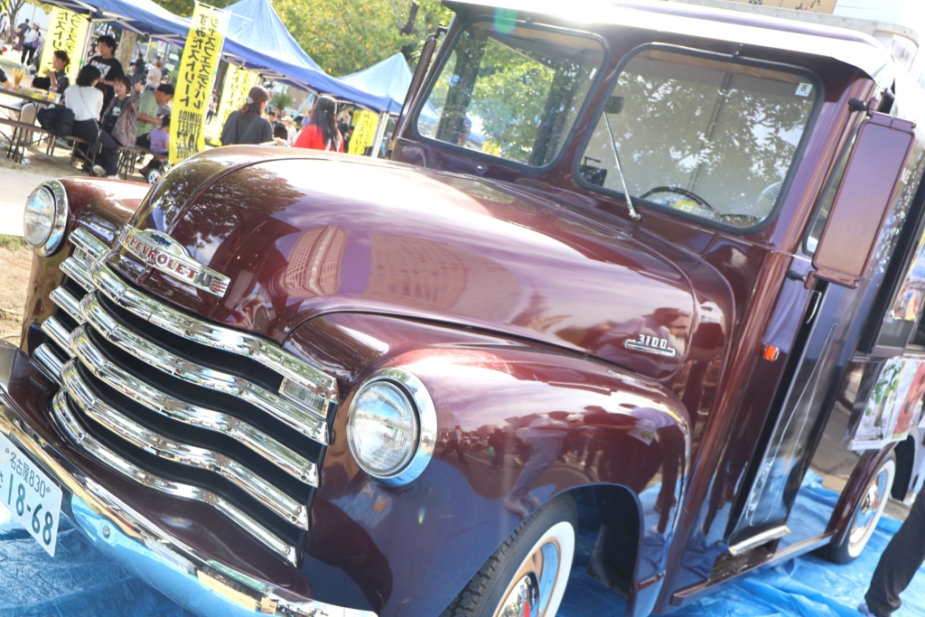 いくつものキッチンカーやテントが並び、迷ってしまうほどの種類のビールが販売されている中、ひときわ目を惹いていたのは1952年式のアメ車「シボレー」。