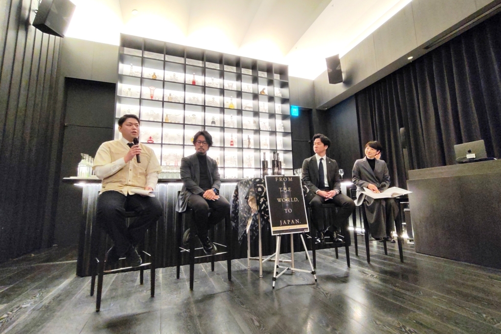 2月9日に行われた「DAIYAME40」日本上陸レセプションでは、濵田酒造株式会社 代表取締役社長の濵田光太郎氏、バーテンダーの南雲主于三さん、小坂駿さん、さらにモデレーターとして児島麻理子さんが登壇しました。