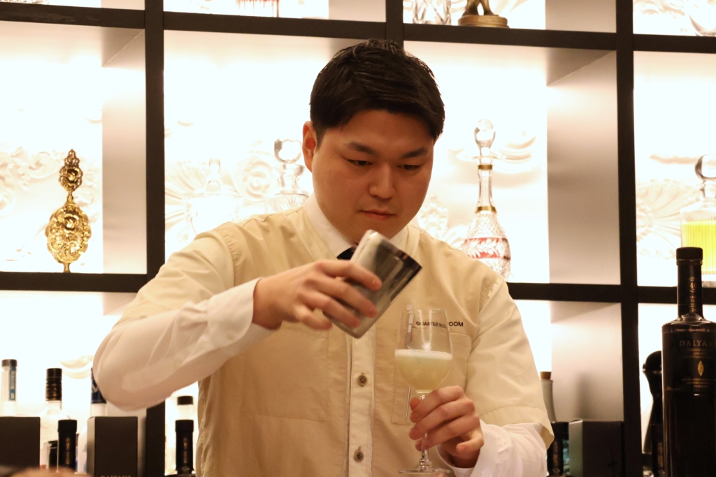 一口飲んだ濵田氏は「日本の香りというか、日本食の味と言いますか……カクテルを“食べている”感じがしますね!」と驚きの表情。