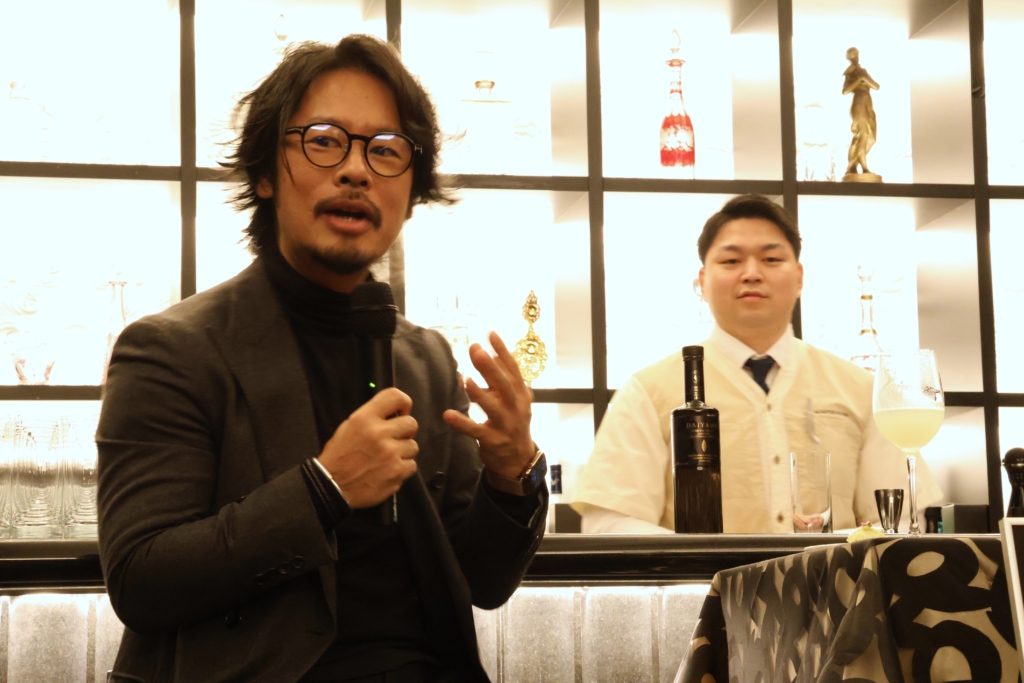 ゲストの南雲さんがだいやめと出会ったのは2019年頃だったそうで、「最初に25度を飲んだのがきっかけで、当時はライチの香りとか、バラを感じるフレーバーがとても新しくて。僕たちが作るカクテルの世界では焼酎はカクテルの中で存在感が弱くなりがちでしたが、だいやめは負けずに個性がそのまま残るので非常にカクテルに使いやすい焼酎がようやく出たなと印象深かったことを覚えています」と当時を思い出し語りました。