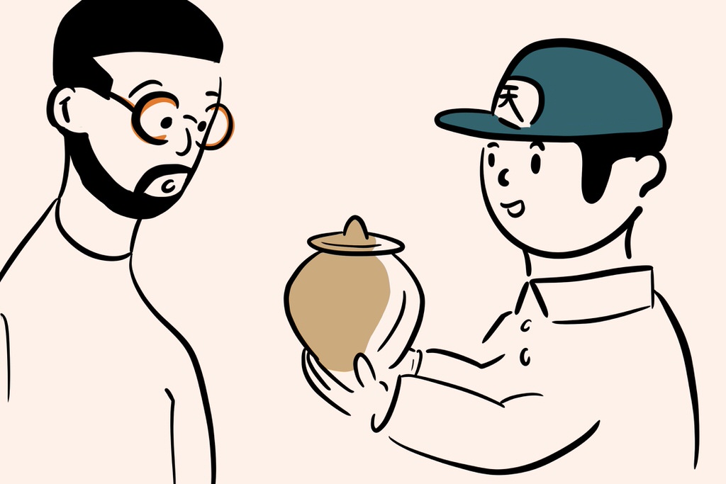 天元:あぁ!〈甕米波〉か!あれは間違いない。甕米波はね、実際こういう甕に貯蔵されているんです。ほら、どうぞ。