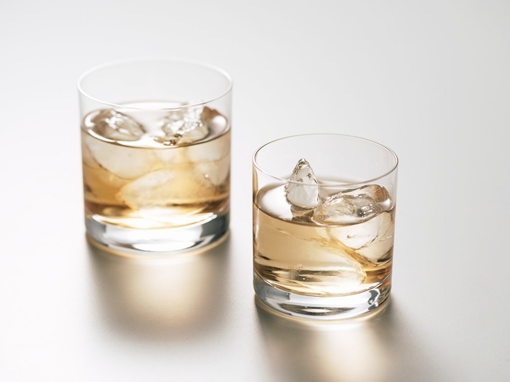 スタンダードなタンブラータイプの「プラチナ」シリーズの9ozオールド、6ozオールドは、映画を見たりしながら、お酒だけをじっくり飲みたい時に最適。底の部分の厚みもあって、樽熟成タイプの色がついた焼酎を注ぐときれいなんですよね……。ロックやストレートが気分です。
