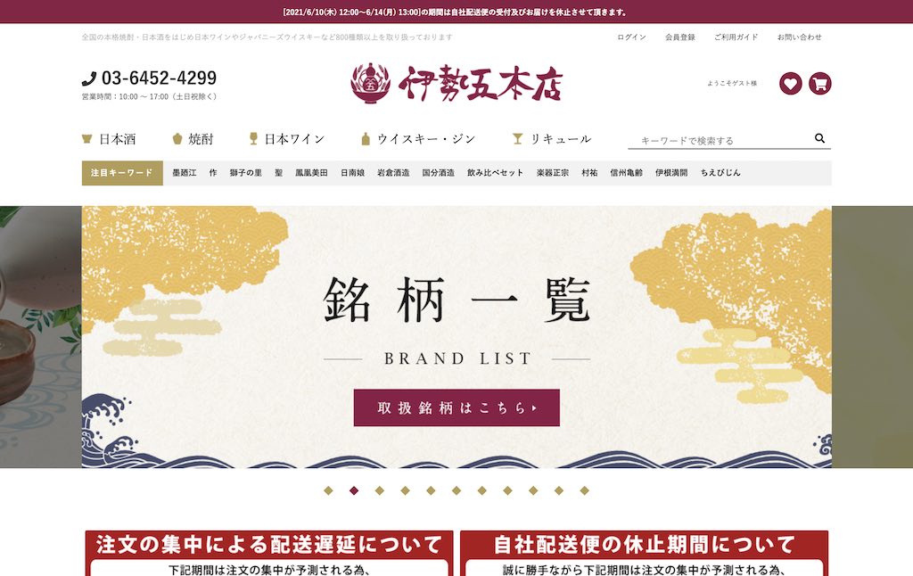 1706年に創業した東京の酒店、伊勢五本店の通販サイトは、さすがは老舗の商品数! 定番銘柄から期間限定のものまで、さまざな焼酎がずらりと並び、眺めているだけで1日が過ぎてしまいそう。家飲み用、ギフト用など用途に合わせて簡単に商品が探せるのもポイント。もちろん熟成焼酎の数も随一なので、じっくりショッピングを楽しみたい時にもおすすめ!