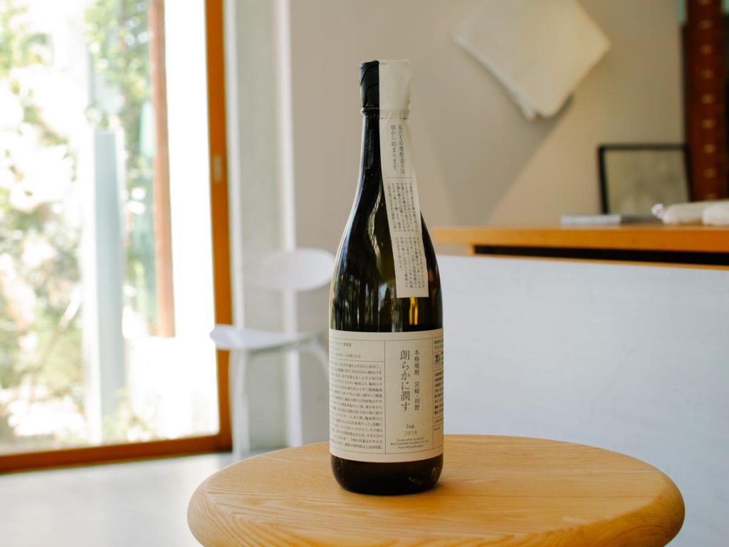 もうひとつが同じく宮崎県の渡邊酒造場の〈朗らかに潤す log.2018〉。ラベルや封シールにびっしりと紹介文が書かれているんですが、デザインに清潔感があって野暮ったくない。焼酎の味わいとリンクするしっとりとしたラベルの紙質も印象的です」