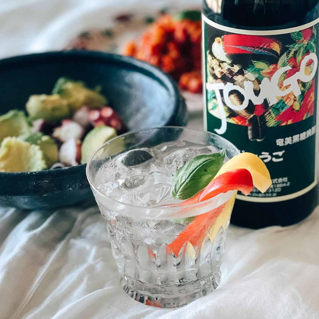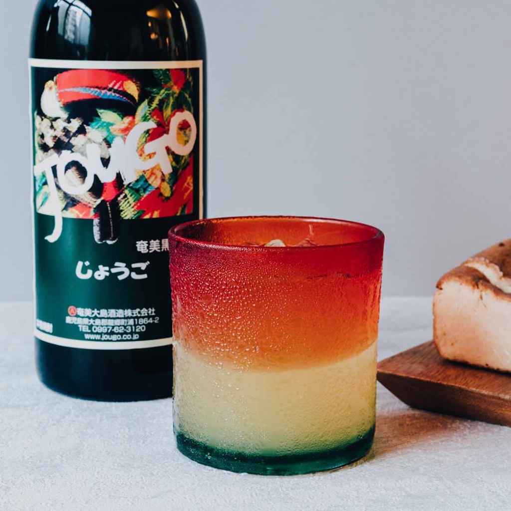食事と一緒に楽しむときにも、口に入れると料理の味をちゃんとパツンと断ってくれるような切れ味もあるので、おうちごはんと一緒に楽しみたいときにも完璧な相棒です。奄美大島の南国パラダイス感が前面に出たカラフルで陽気なラベルもよい♡ ちなみに黒糖焼酎は熟成ととても相性がよく、奄美大島酒造の銘柄は、全て2年以上寝かせて出荷されています。こちらの〈じょうご〉も、ステンレスタンクで2年以上寝かせた熟成焼酎です!