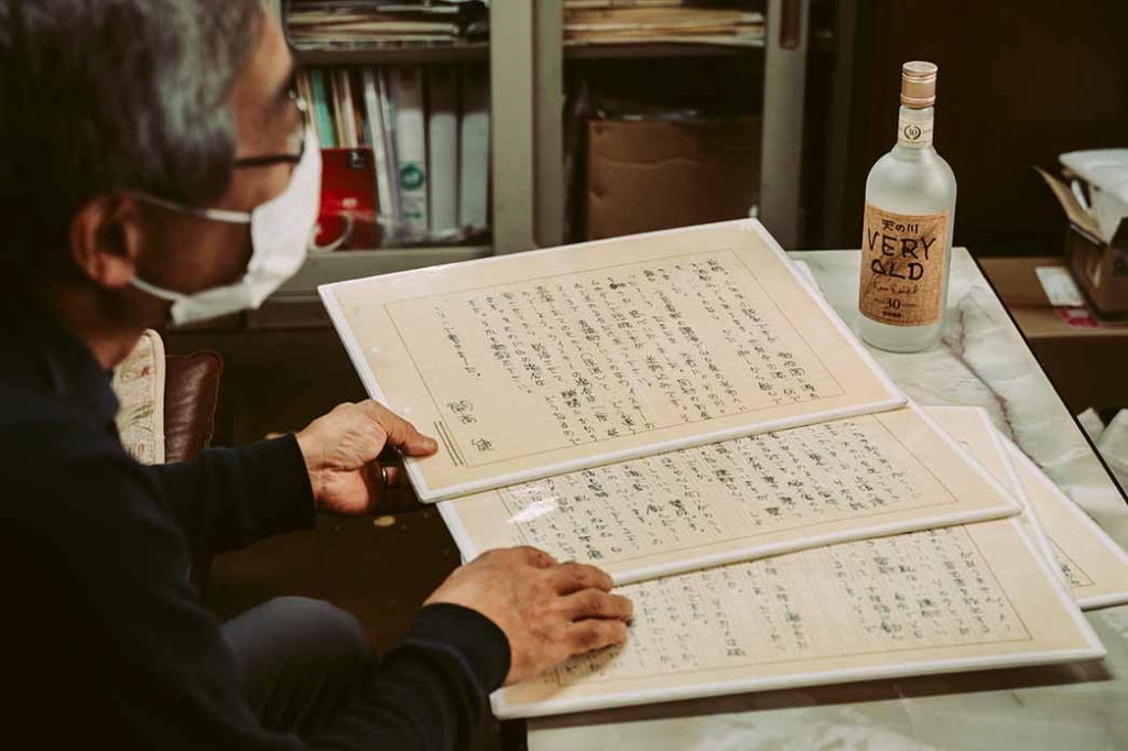 〈天の川 VERY OLD〉を購入すると、木箱には開高健が天の川酒造に宛てた3通の手紙のコピーも同封されている。多くの人は、その手紙を読みながら、長期熟成の1杯目を味わうことになる。それは、文豪が「どんなにいいものだろう」と夢想した味だ。