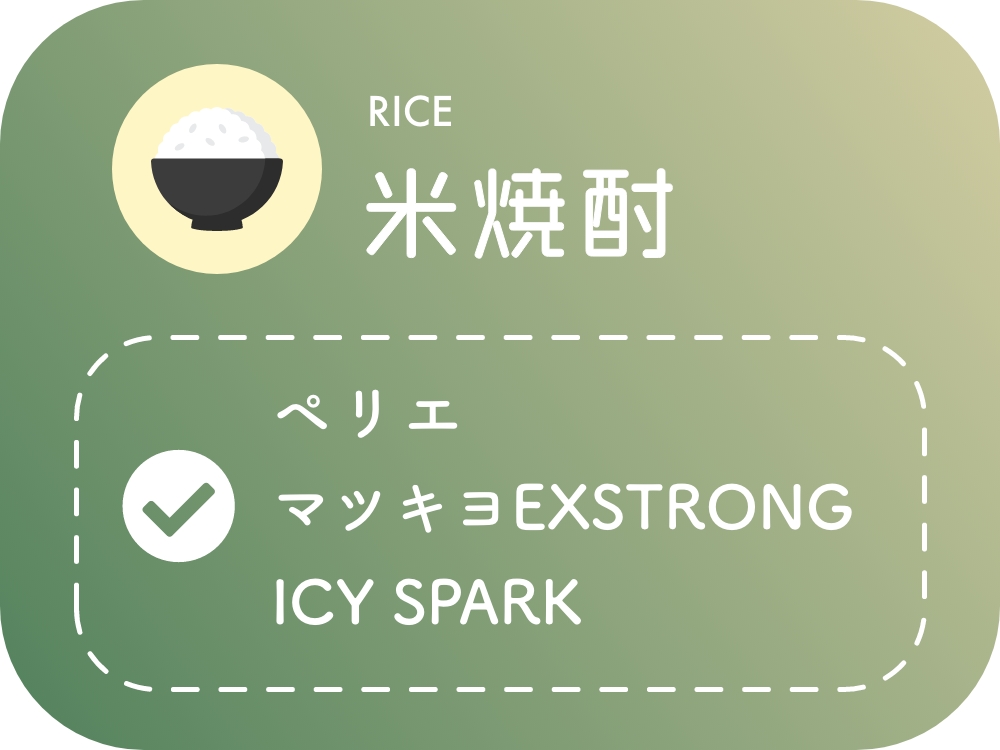 米焼酎〈メローコヅルエクセレンス〉には、〈ペリエ〉、〈matsukiyo EXSTRONG〉、〈ICY SPARK〉がベストマッチ!