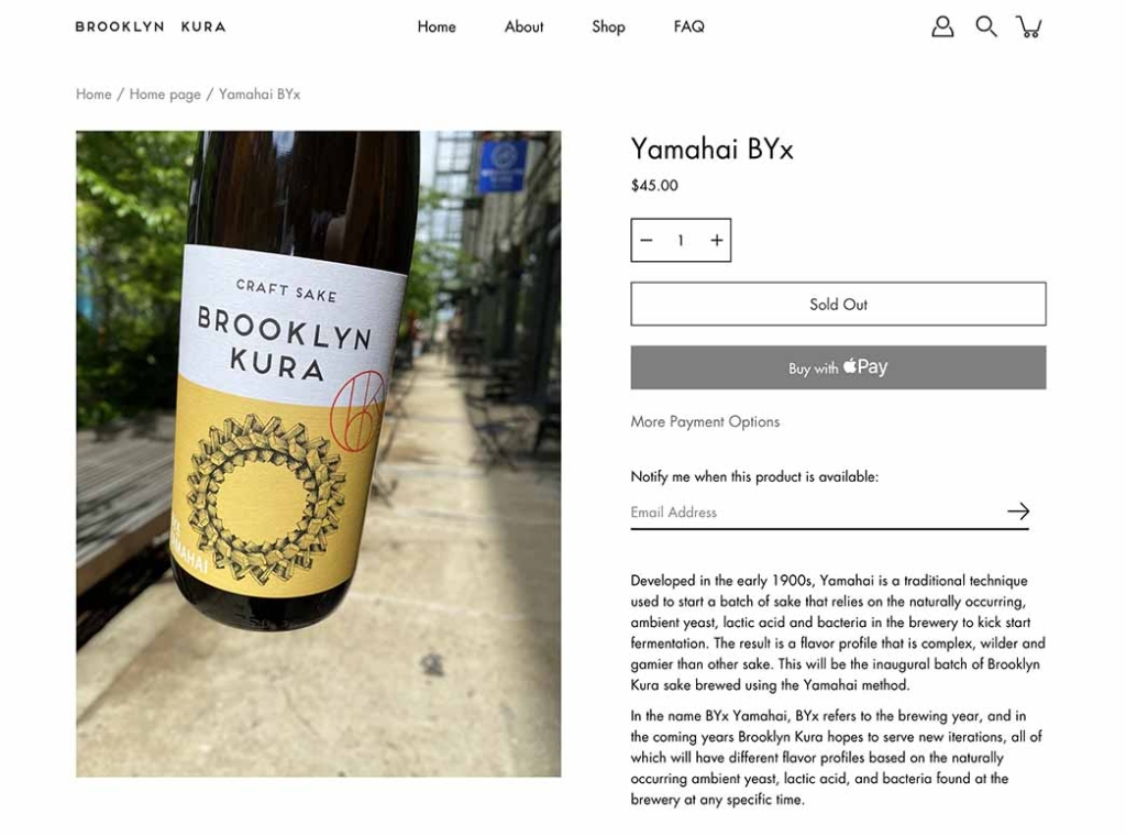 「Brooklyn Kura」は、ニューヨークの気鋭のつくり手。伝統的な日本酒づくりに、新しい原材料や発酵手法を組み合わせている。たとえば〈Occidental〉は、純米酒でありながら“ドライホップ”の手法を使ったものだ(ビールにホップを加える新しい手法“ドライホップ”は、現在クラフトビール業界でかなりの人気がある)。さらに彼らは発酵にも挑んでおり、限定販売の〈Yamahai Byx〉は、ノルウェーの伝統的なビールで使用される「gjærkrans」(イェルクランス)という酵母を使った自然発酵による日本酒だ。