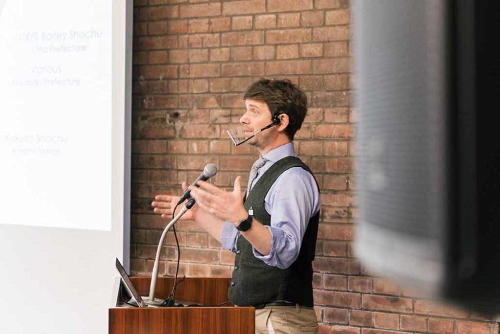 『Japan’s Best-kept Secrets: Shochu & Awamori』と題して、本格焼酎・泡盛の基礎知識や、それを海外へと伝えていくための苦労や工夫について、ご自身の経験も交えながら話してくださいました。